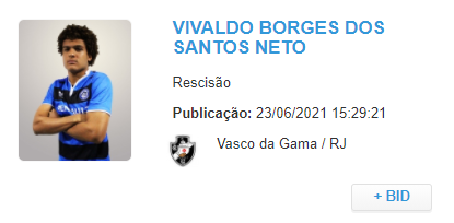 Neto Borges tem sua rescisão com o Vasco publicada pelo BID da CBF