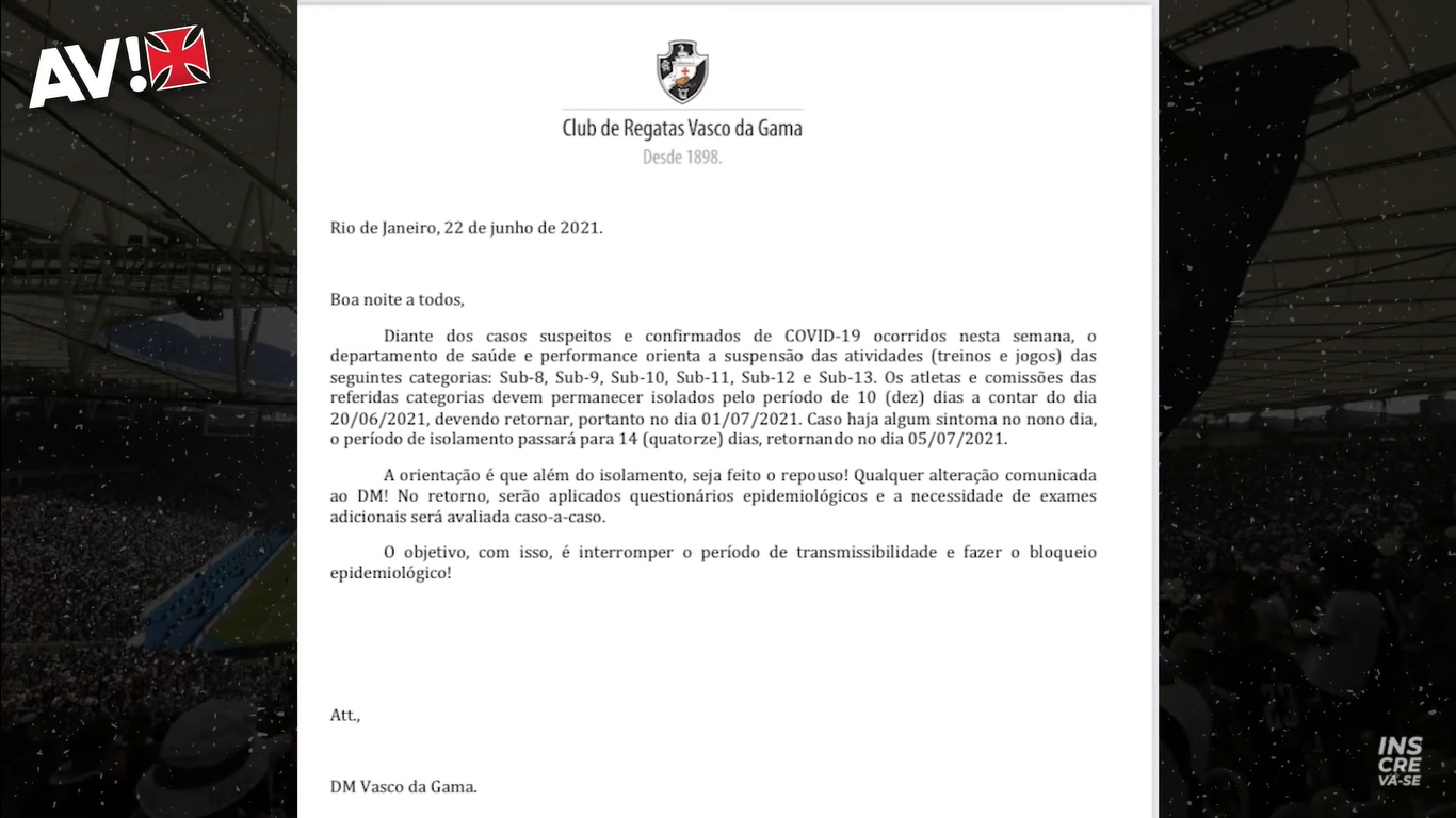 De acordo com informação do canal Atenção Vascaínos, o Vasco divulgou um comunicado interno sobre os casos de Covid na base. Veja mais detalhes no vídeo abaixo.