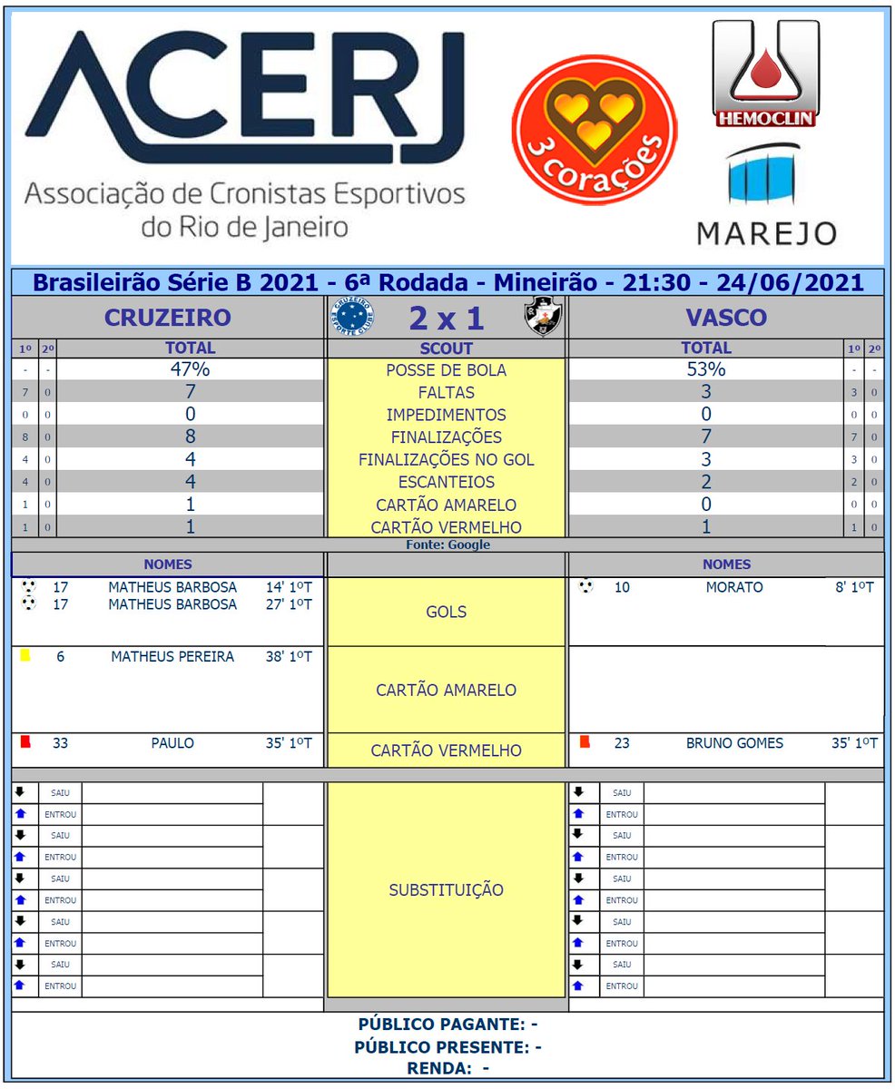 Scout do 1º Tempo de Cruzeiro e Vasco pela 6ª Rodada do Campeonato Brasileiro da Série B 2021 no Mineirão (Fonte: Google) #BrasileiraoSerieB #acerjinforma #CRUxVAS #Vasco #Cruzeiro @VascodaGama @Cruzeiro