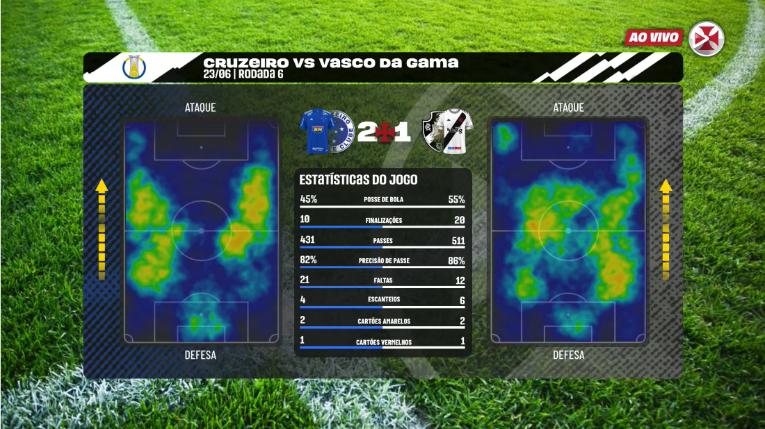 24/06/21 - Confira as estatísticas de Cruzeiro 2 x 1 Vasco