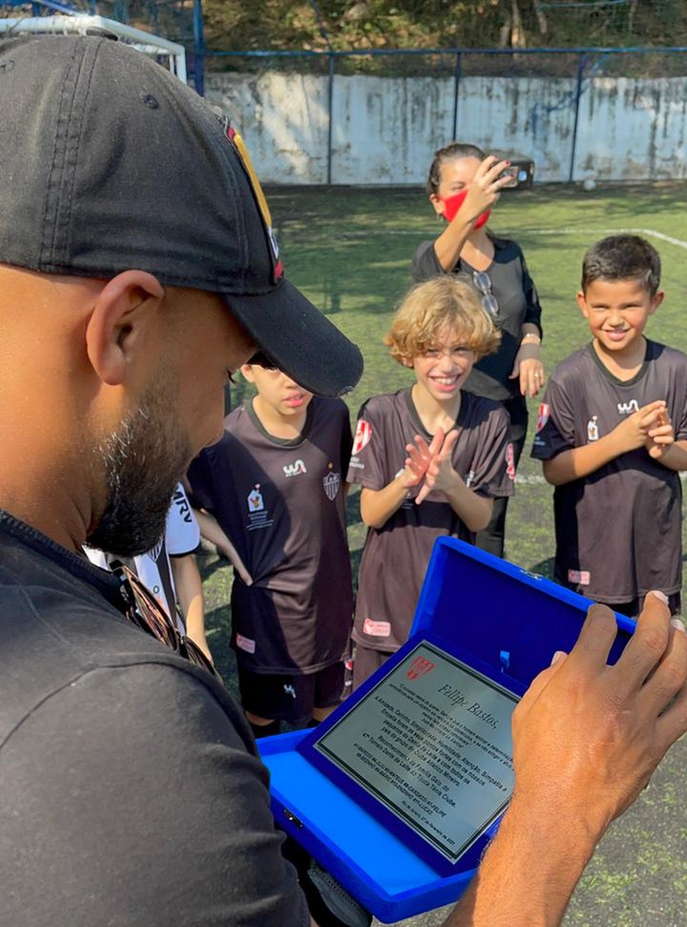 - Agradecer muito ao Fellipe Bastos por esse dia incrível com ele. Um treino para a garotada jogar bola com ele, ter um pouquinho de contato com um jogador profissional. Muito obrigado, Fellipe. O que você fez pelo nosso grupo foi indescritível.