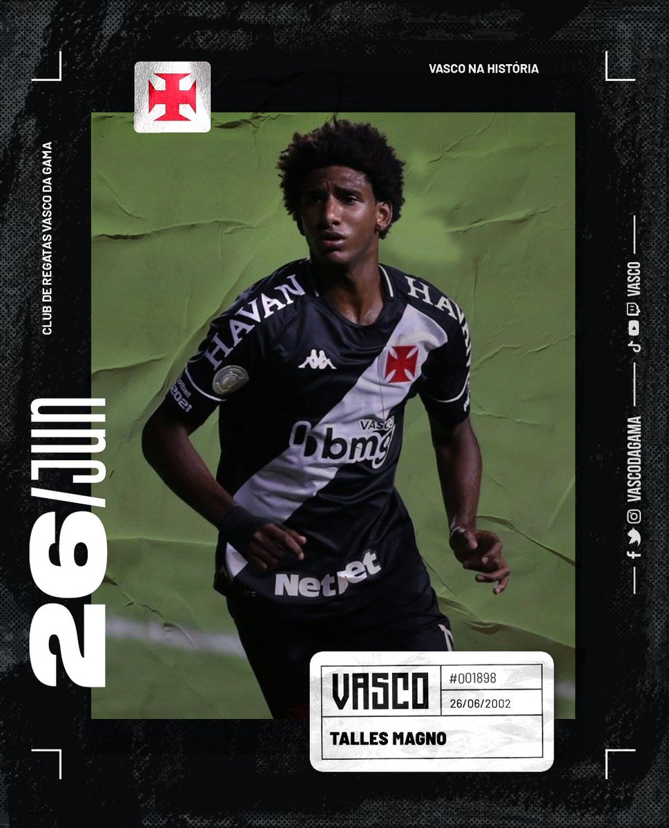 Vasco parabeniza o aniversariante Talles Magno: 'Hoje é dia de cria da #BaseForte!'