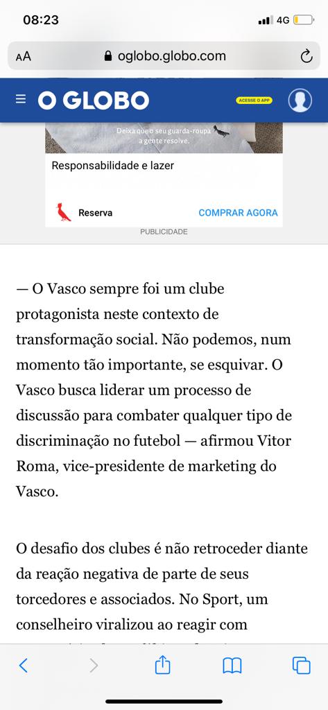 Mudemos juntos. O caminho é longo, mas o Vasco dará tantos passos quantos forem necessários neste debate, indispensável ao mundo atual.