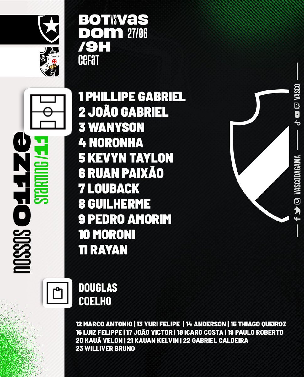 23/06/21 - Juniores: Confira a escalação do Vasco para o jogo contra o Botafogo
