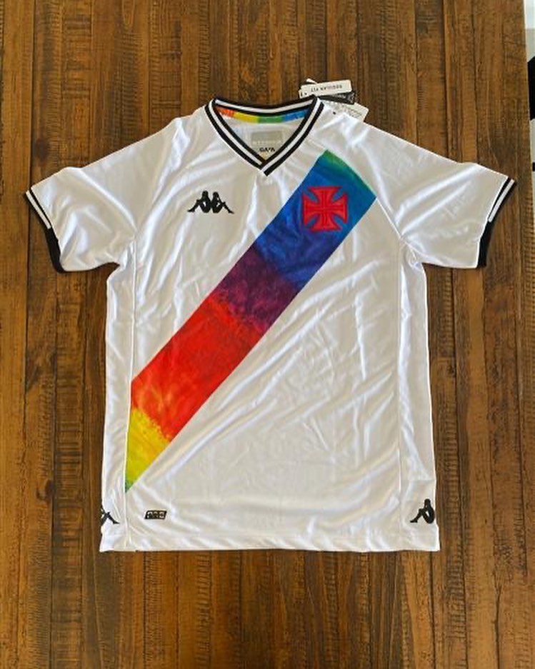 Minha gente, o que é essa nova camisa do @vascodagama? Em homenagem ao Dia Internacional do Orgulho LGBTQIA+, o meu clube do coração lançou a camisa em respeito à diversidade. Vasco, eu te amo! 💢🏳️🌈❤️ #VascodaGama #RespeitoEDiversidade #Pride