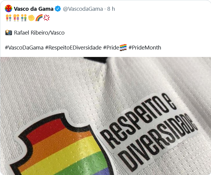 Muito orgulho do meu time entrando em campo com a camisa em homenagem ao dia internacional do Orgulho LGBTQIA+, Consideramos justa toda forma de amor! VIVA O AMOR🌈🏳️🌈