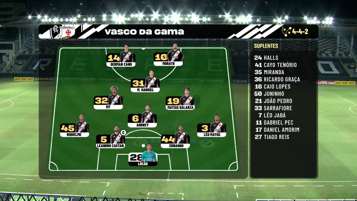 19:53 - Confira a escalação do Vasco; Matías Galarza é titular