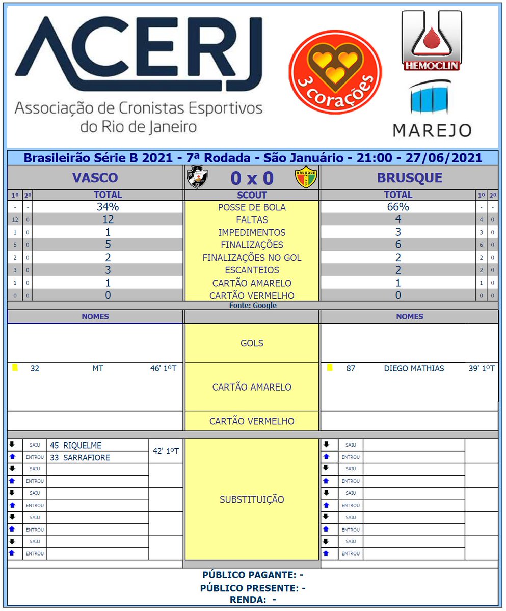 Scout do 1º Tempo de Vasco e Brusque pela 7ª Rodada do Campeonato Brasileiro da Série B 2021 em São Januário #BrasileiraoSerieB #acerjinforma #VASxBRU #Vasco #Brusque @VascodaGama @Brusqueoficial