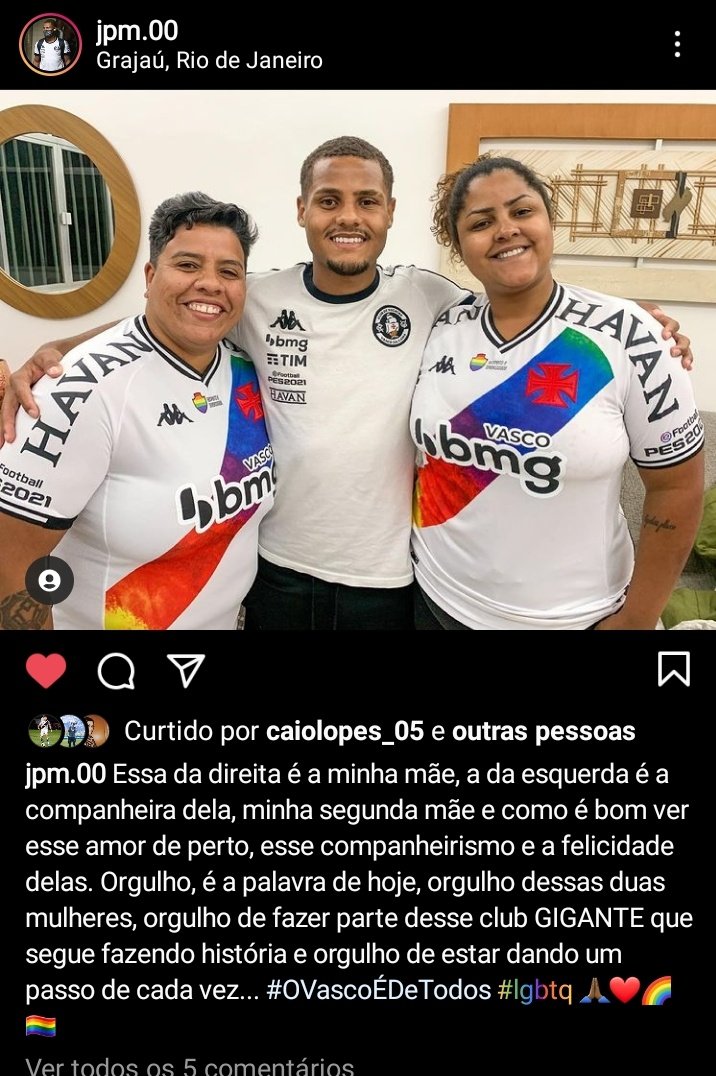 João Pedro presenteia familiares com camisa Vasco LGBTQIA+ e elogia iniciativa do clube