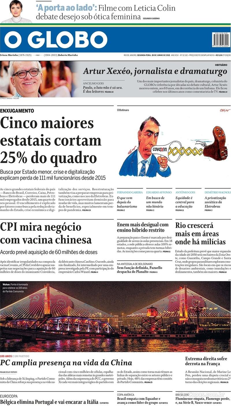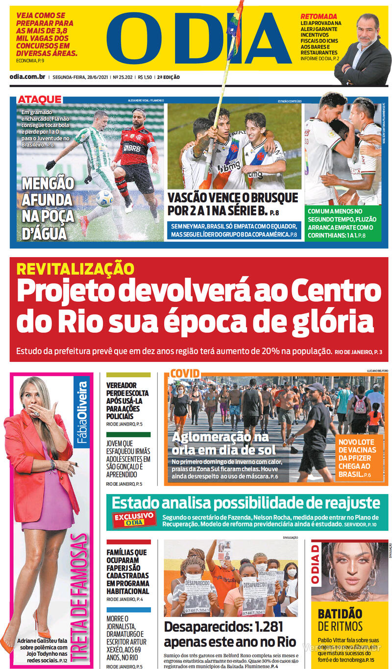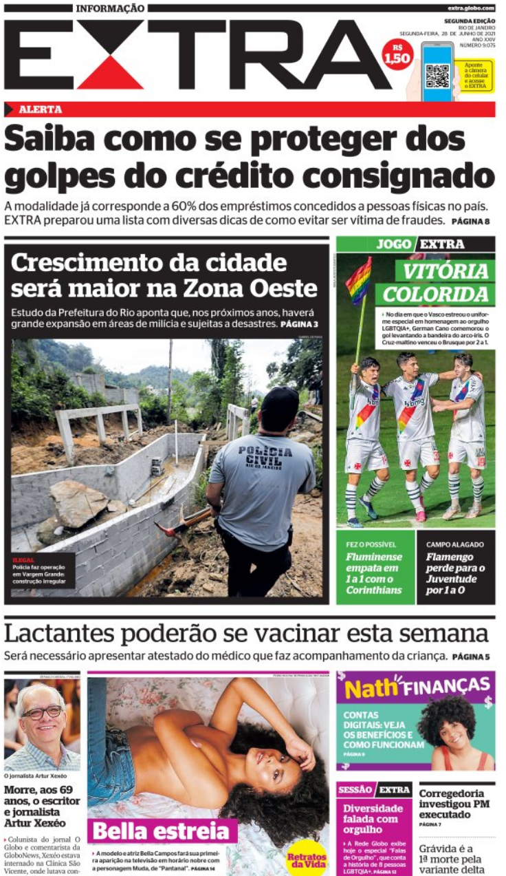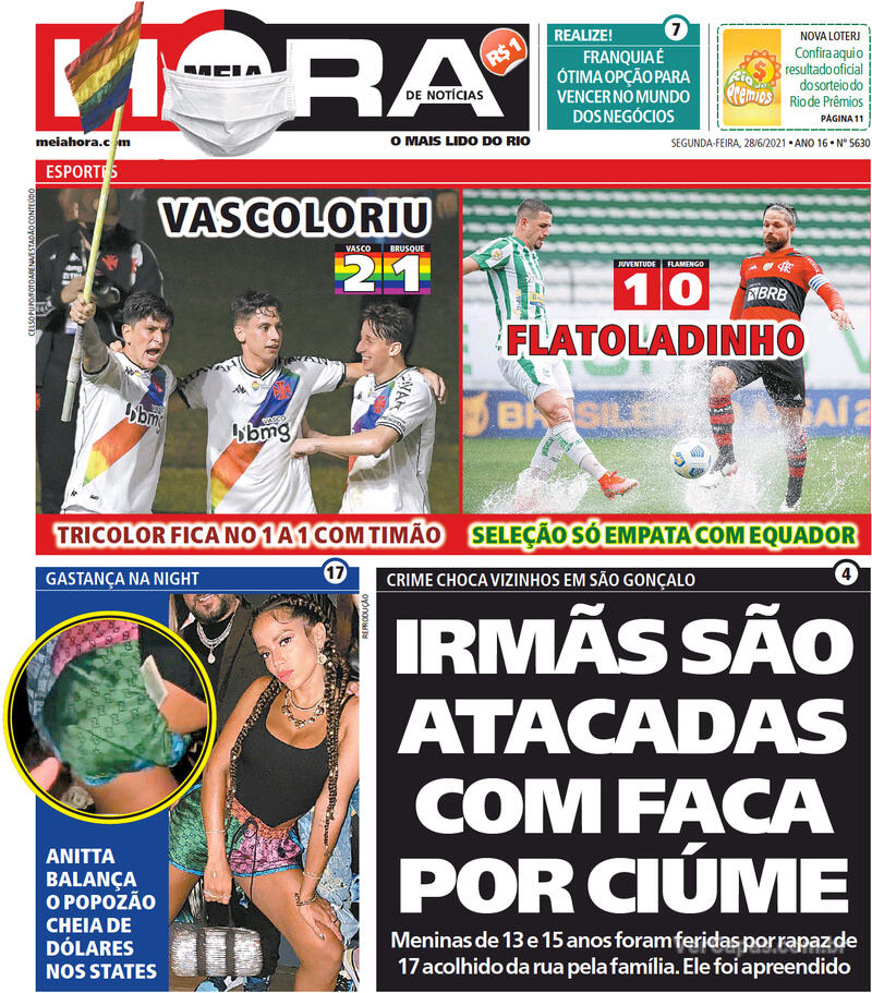 Pelo Brasileiro da Série B, o Vasco derrotou o Brusque por 2 a 1 na noite do último domingo, em São Januário, com gols de Germán Cano e Léo Matos, num dia marcado por ações de marketing em favor da causa LGBTQIA+. Veja as capas dos jornais.