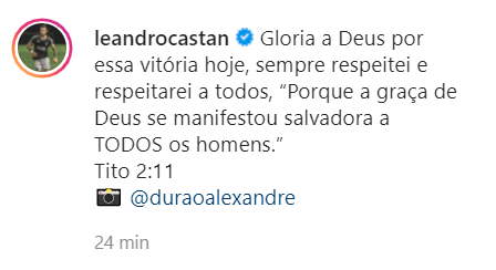 28/06/21 - Leandro Castan: 'Glória a Deus por essa vitória hoje, sempre respeitei e respeitarei a todos'