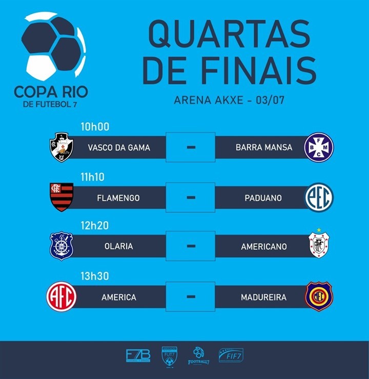 No próximo sábado (03), oito equipes buscam quatro vagas para as semifinais da COPA RIO e você acompanha todos os jogos AO VIVO NA F7 TV Play. Confira os jogos que serão na Arena Akxe.