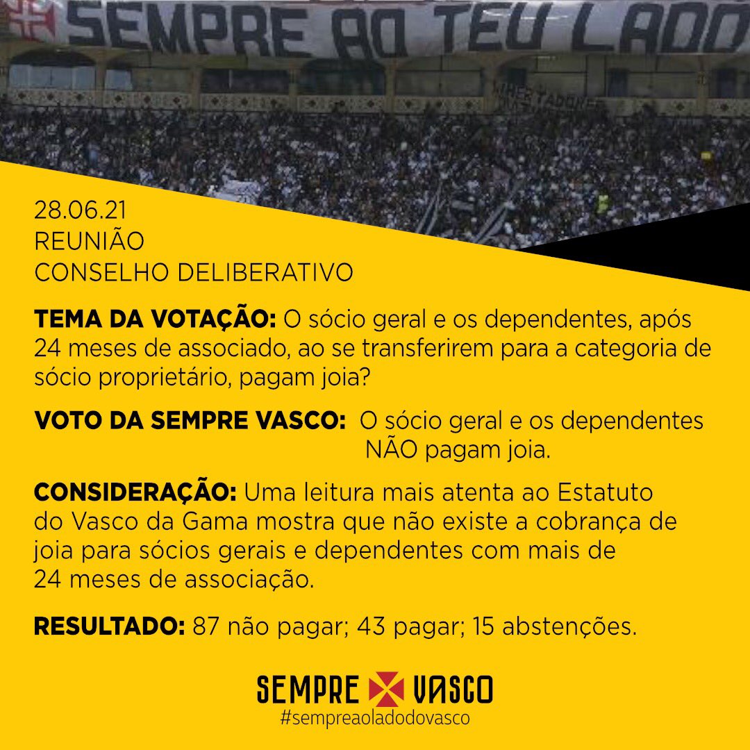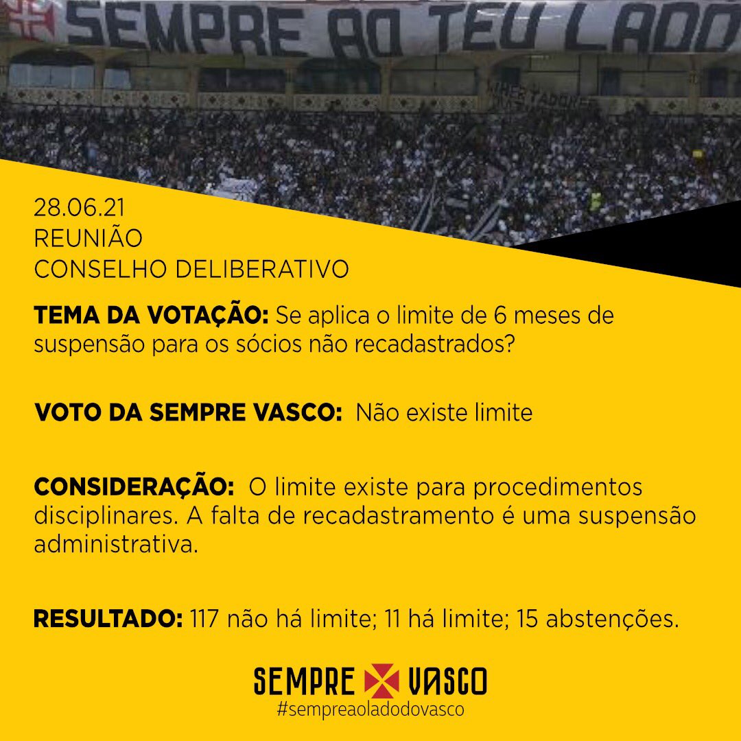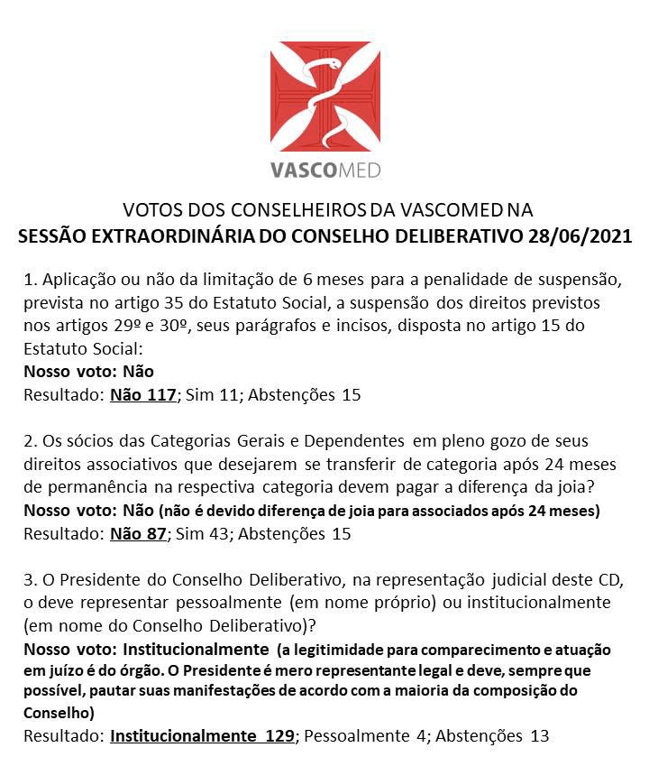 Sempre Vasco e VascoMed divulgam como votaram na reunião do Conselho Deliberativo do dia 28/06