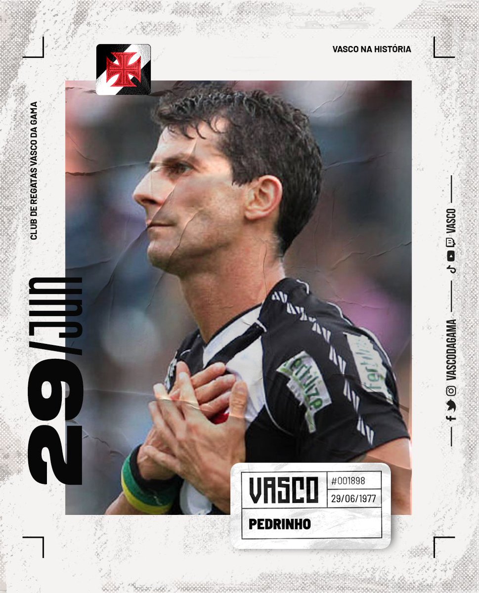 Vasco parabeniza Pedrinho: 'Nosso ídolo está completando hoje 44 anos de muita história e amor pelo Vasco'