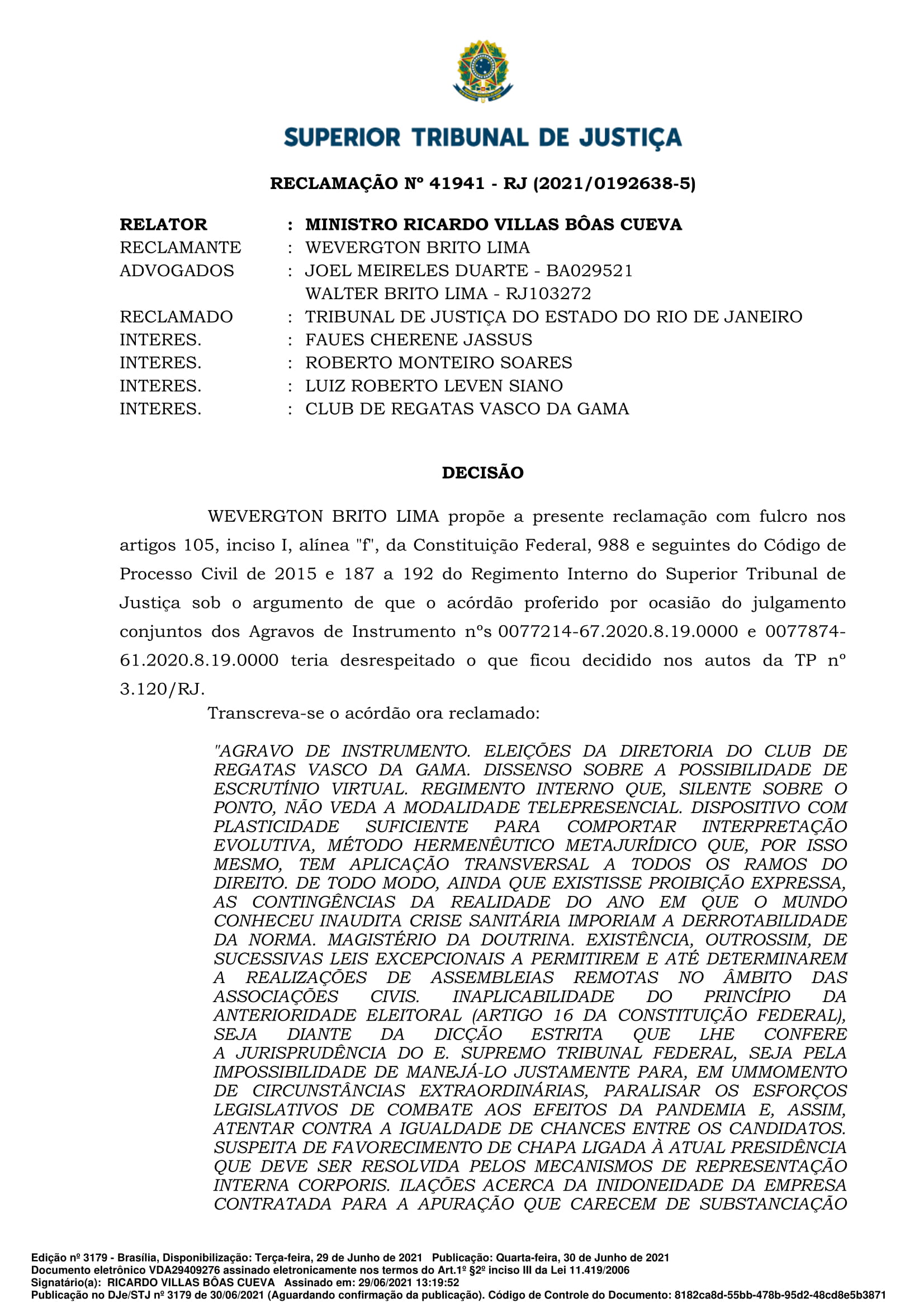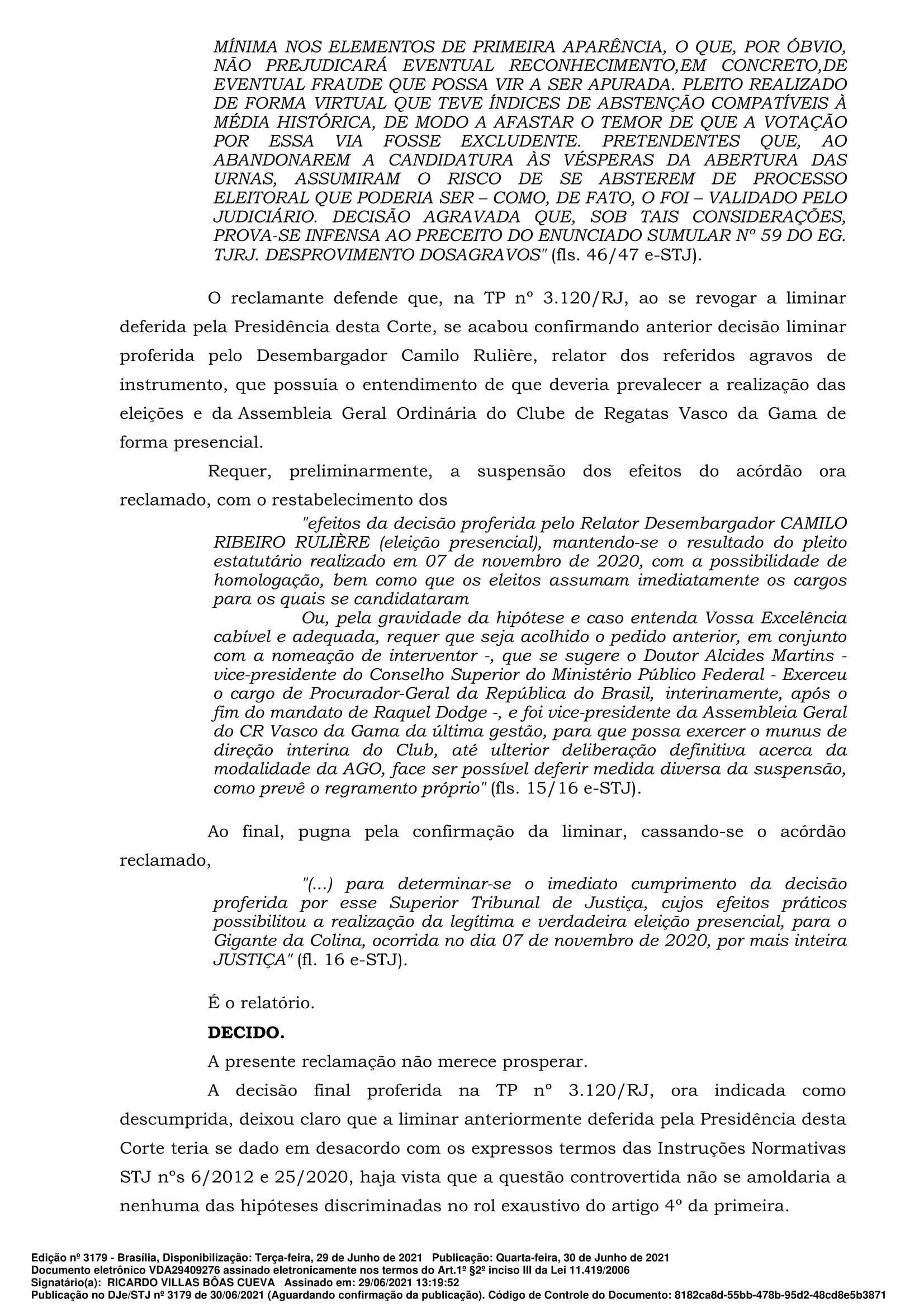 Veja a íntegra da decisão do STJ que manteve Jorge Salgado como presidente do Vasco