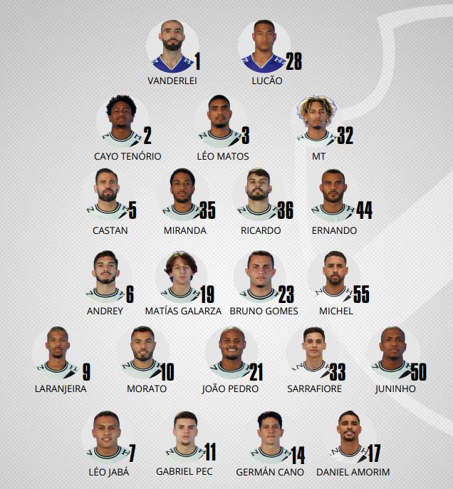 Confira os relacionados do Vasco para o duelo contra o Goiás. Entre eles, o volante Michel, que desfalcou a equipe diante do Brusque. #lanceSERRINHA