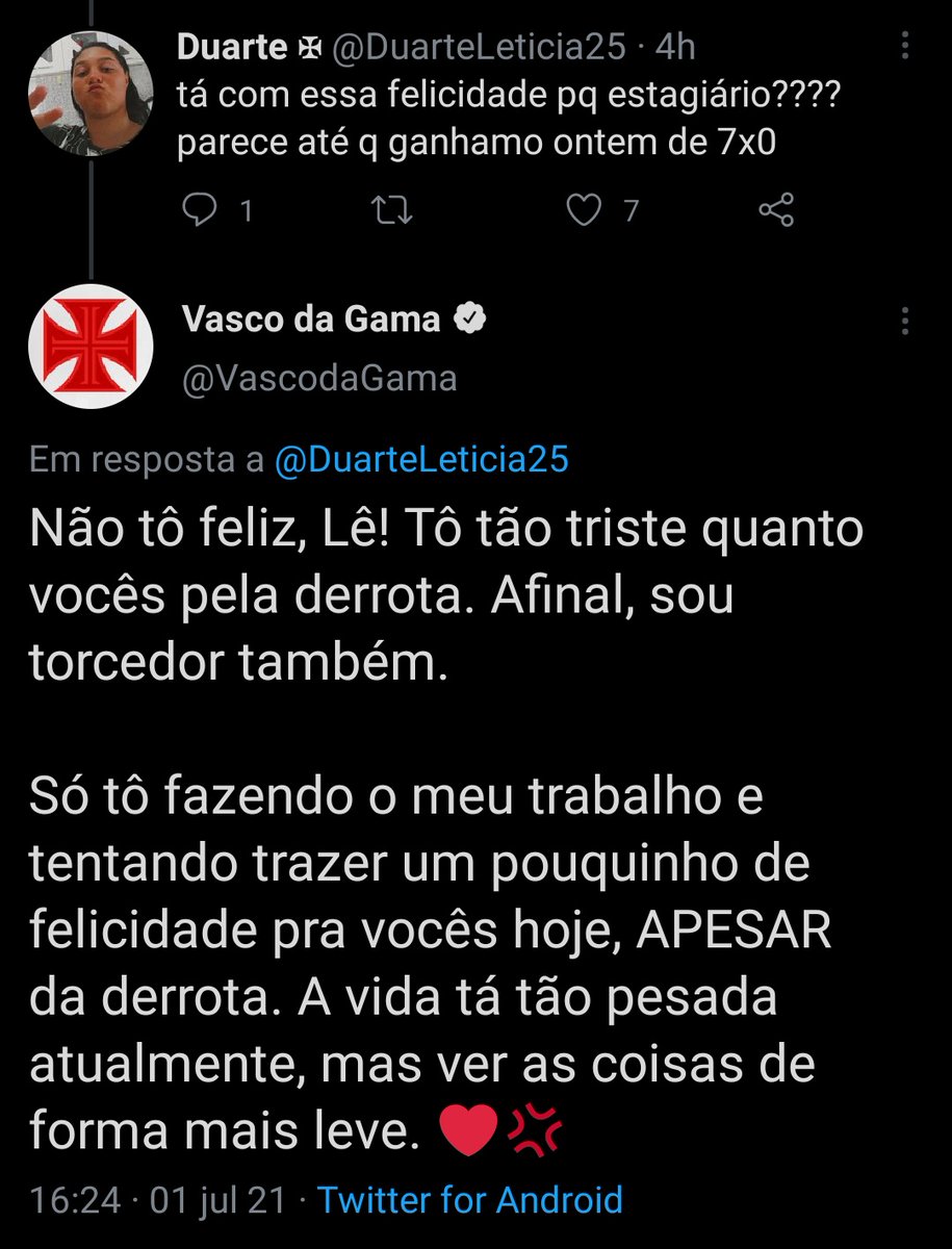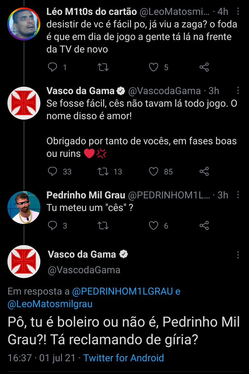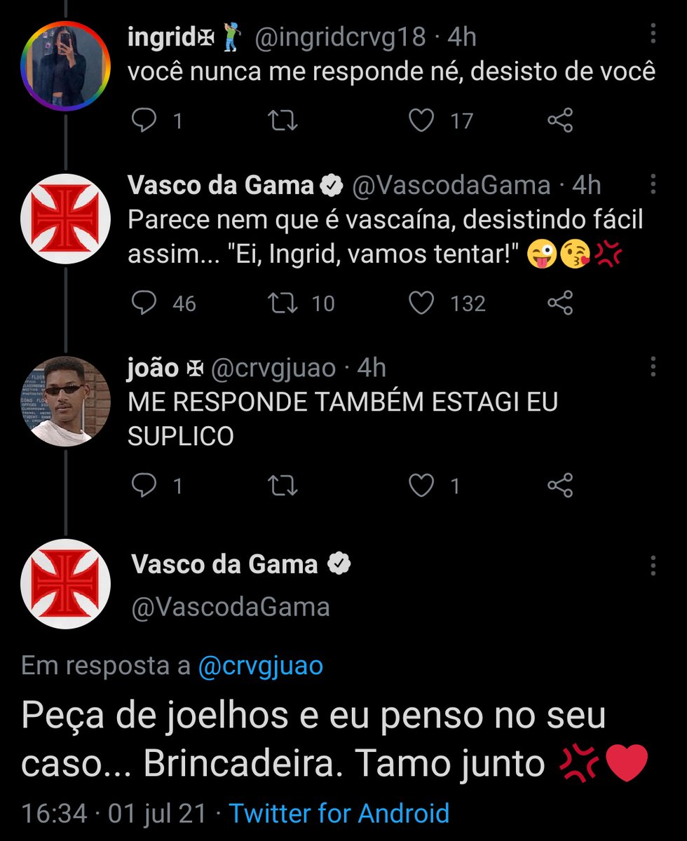 Perfil do Vasco no Twitter vem interagindo mais com os torcedores