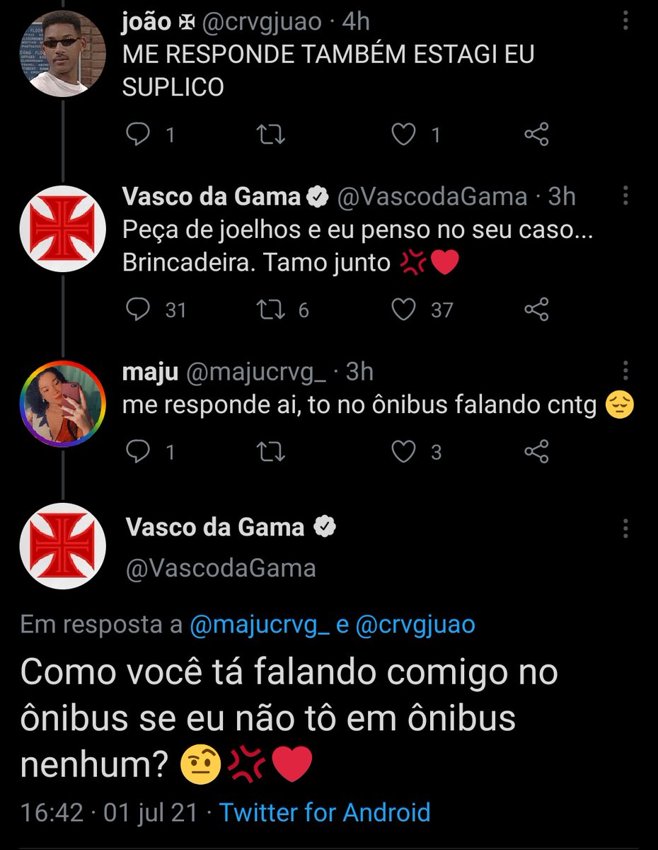 MUDANÇA REPENTINA! É notável que o perfil do Vasco tem interagido muito mais ultimamente.