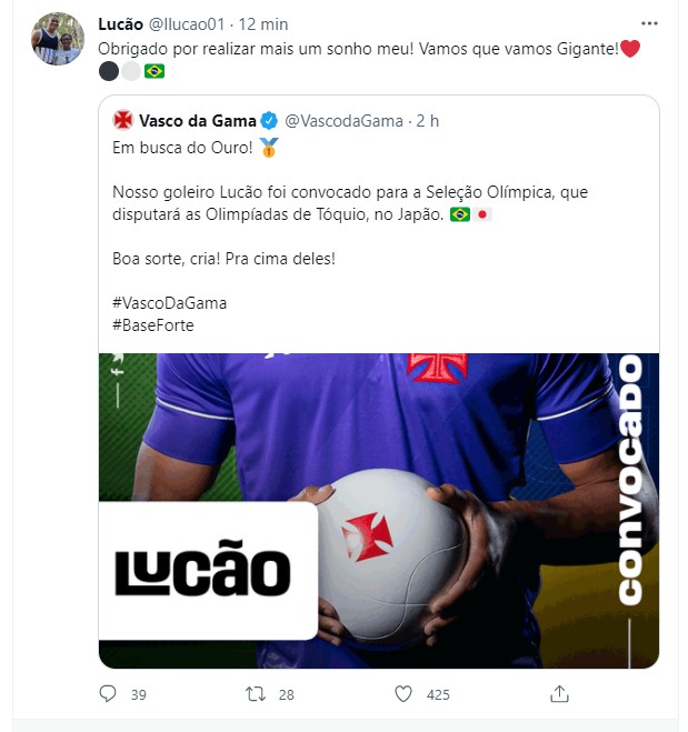 Lucão agradece ao Vasco: 'Obrigado por realizar mais um sonho meu!'