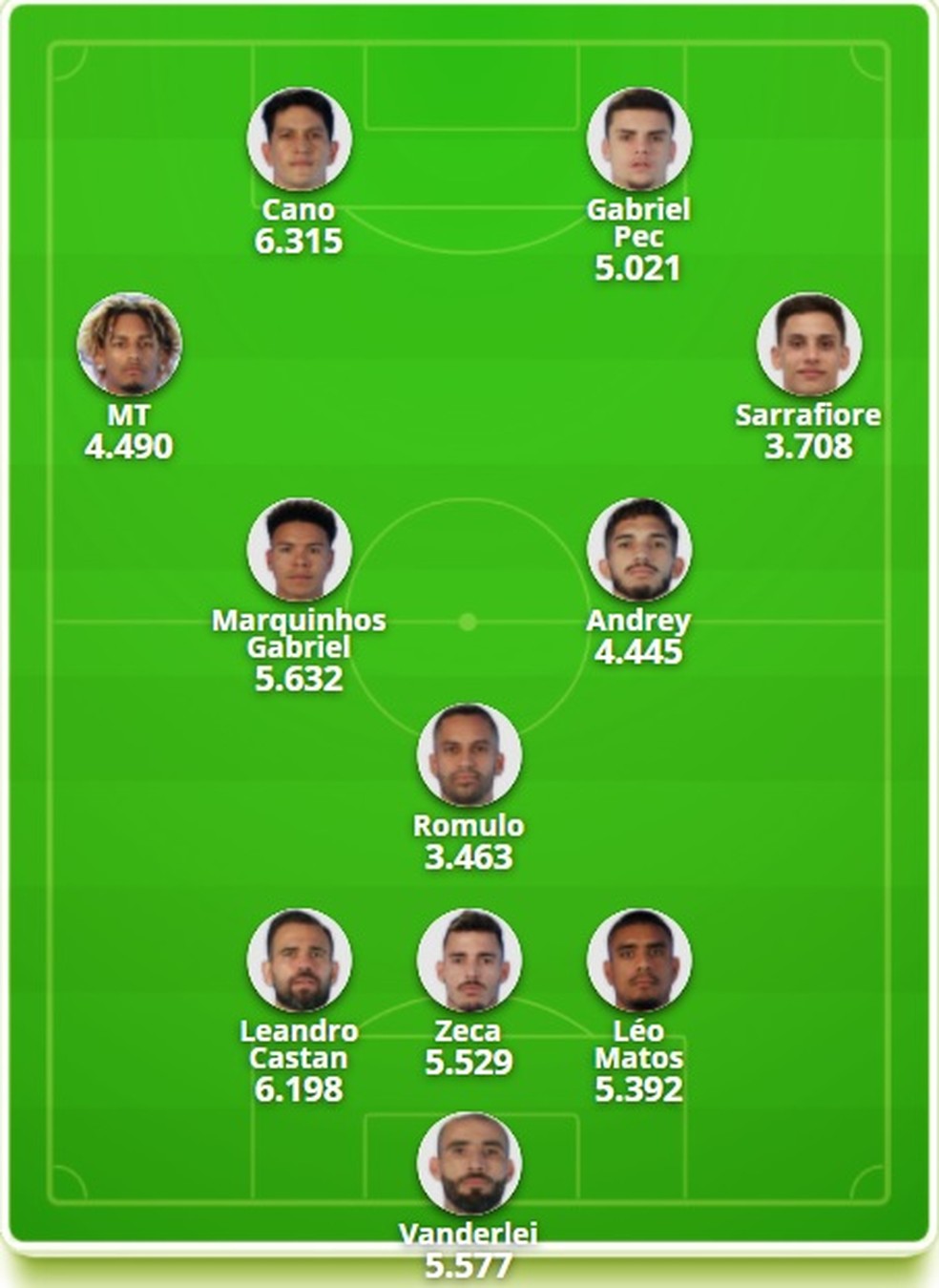 Por conta de tantas baixas, o ge fez a enquete do VC Escala para a partida de sábado. Os jogadores mais votados formaram a escalação abaixo: