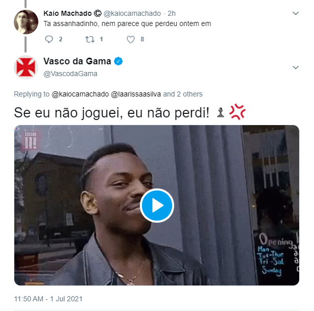 Twitter do Vasco, sobre derrota para o Goiás: 'Se eu não joguei, eu não perdi!'