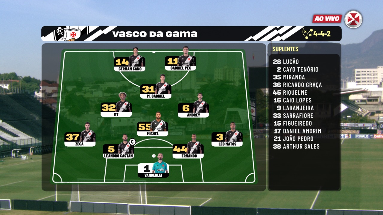 VascoTV apresenta disposição tática do time titular deste sábado; confira