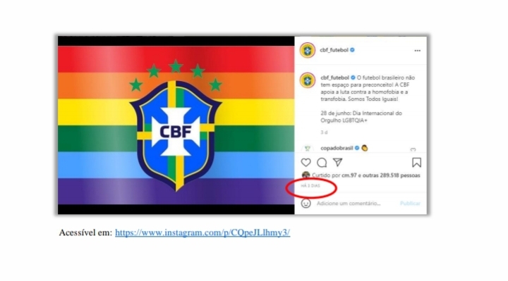 Segue a organização: "Assim, entende-se que a não utilização da camisa de número 24 na seleção brasileira, pelos motivos histórico-culturais anteriormente expostos, é uma alusão e ou referência que ofende imensamente a comunidade LGBTQIA+, cabendo a busca pela obtenção de explicações em juízo. O interesse jurídico para agir em juízo por meio de ação civil pública com obrigação de fazer objetiva que se determine a mudança da camisa frente a proveito futuro próximo, na medida em que a Copa América ocorre em vigência".