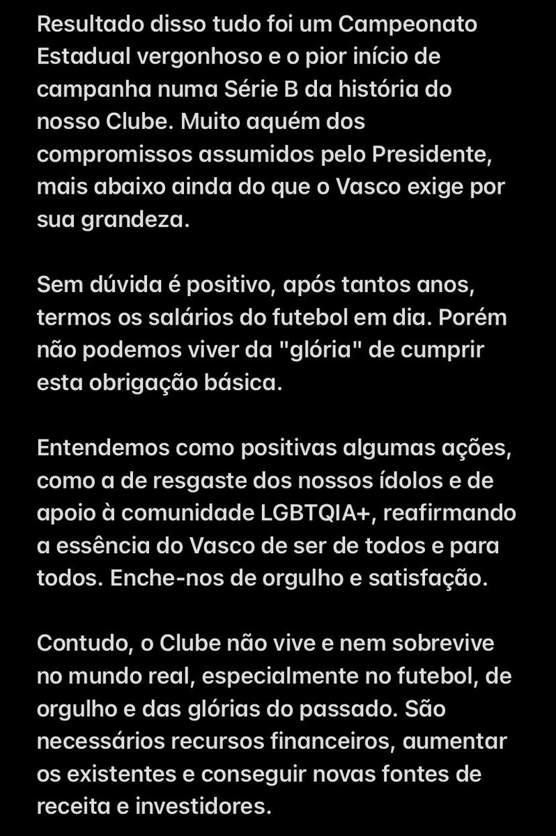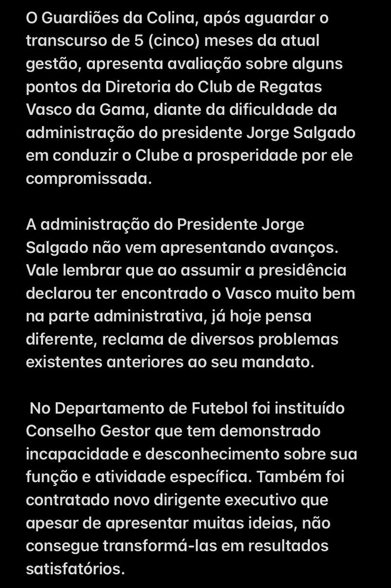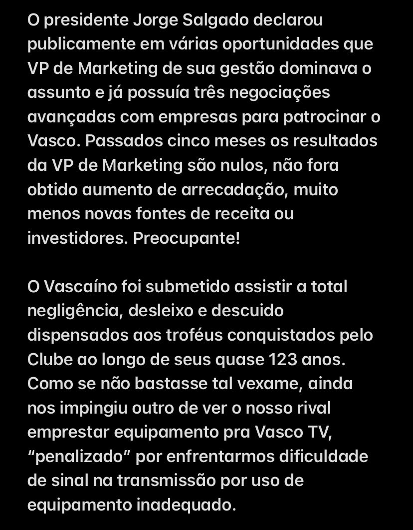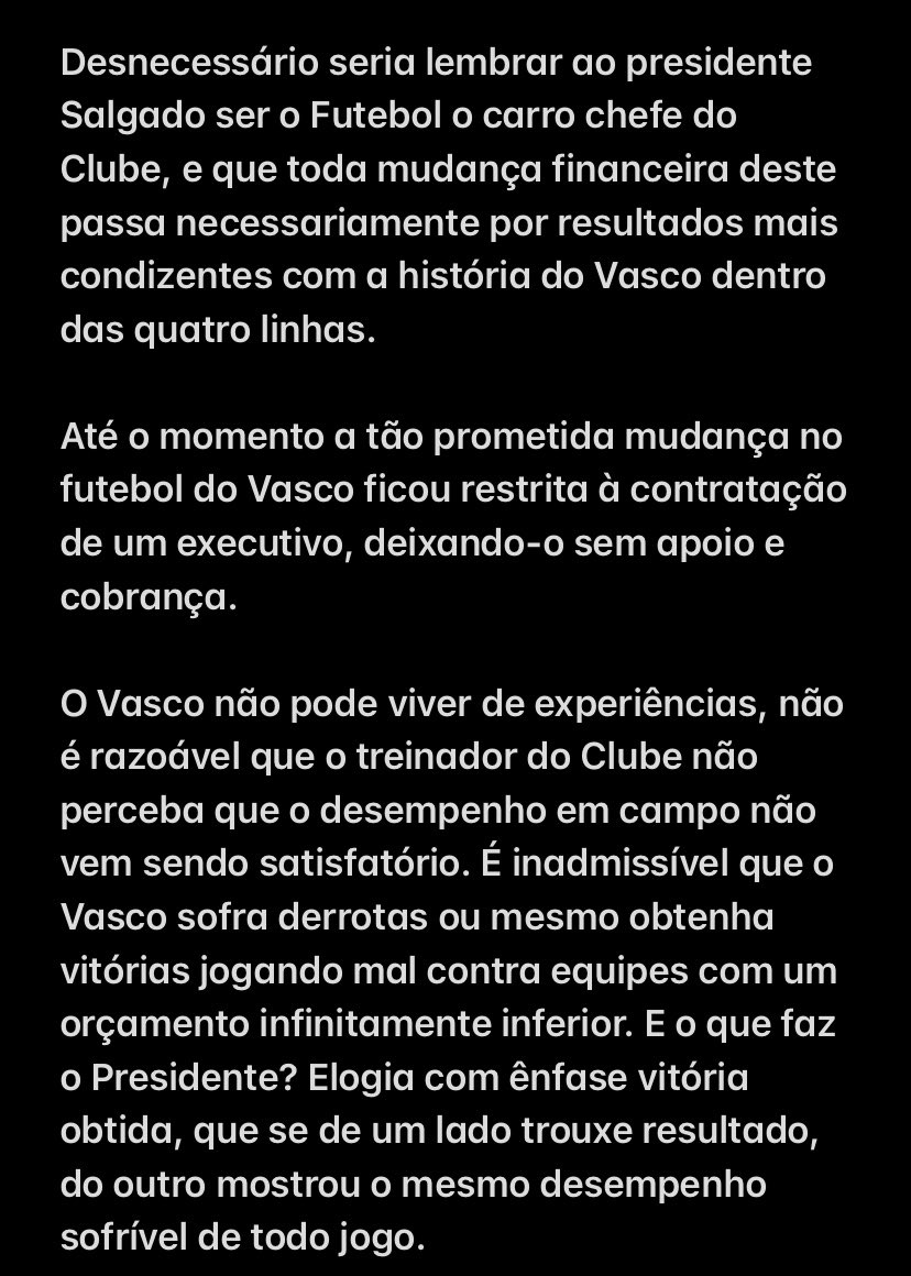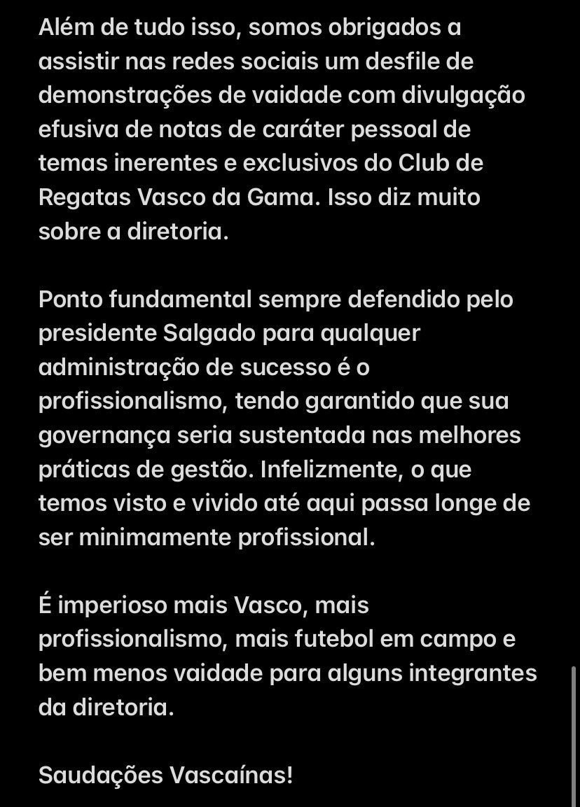 02/07/21 - Casaca divulga nota com críticas a Jorge Salgado e apoio a youtubers vascaínos