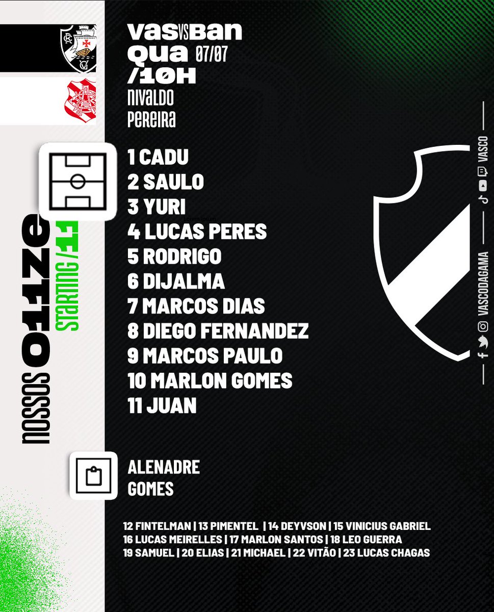 Juniores: Confira a escalação do Vasco para o jogo contra o Bangu