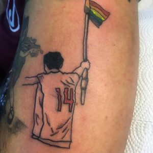 Rodrigo Veloso, um professor de inglês, de 30 anos, resolveu tatuar a imagem emblemática de Cano erguendo a bandeira do arco-íris. Morador de Duque Caxias, ele acompanha o Vasco desde pequeno, e sem pensar duas vezes quis marcar na pele esse momento.