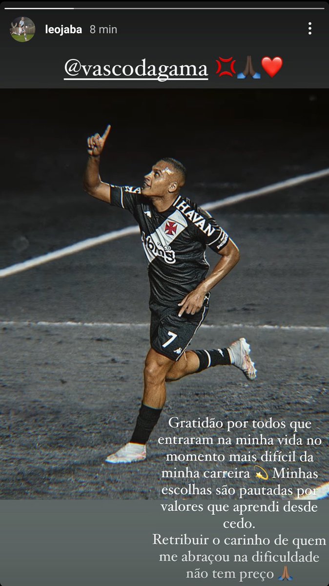 Léo Jabá posta agradecimento ao Vasco no Instagram