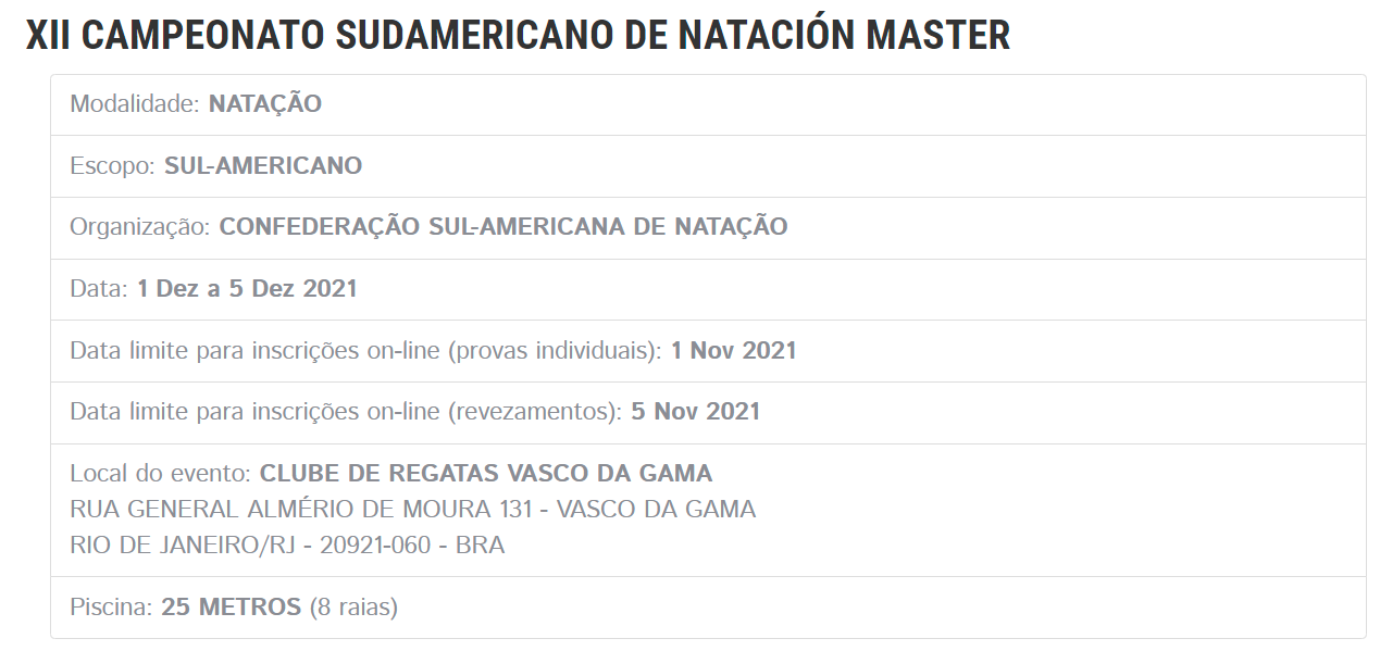 Natação: Vasco sediará o Sul-Americano Master de 1º a 5 de dezembro