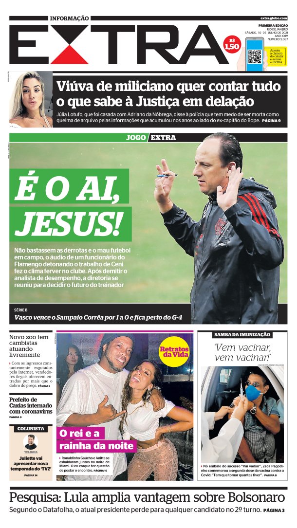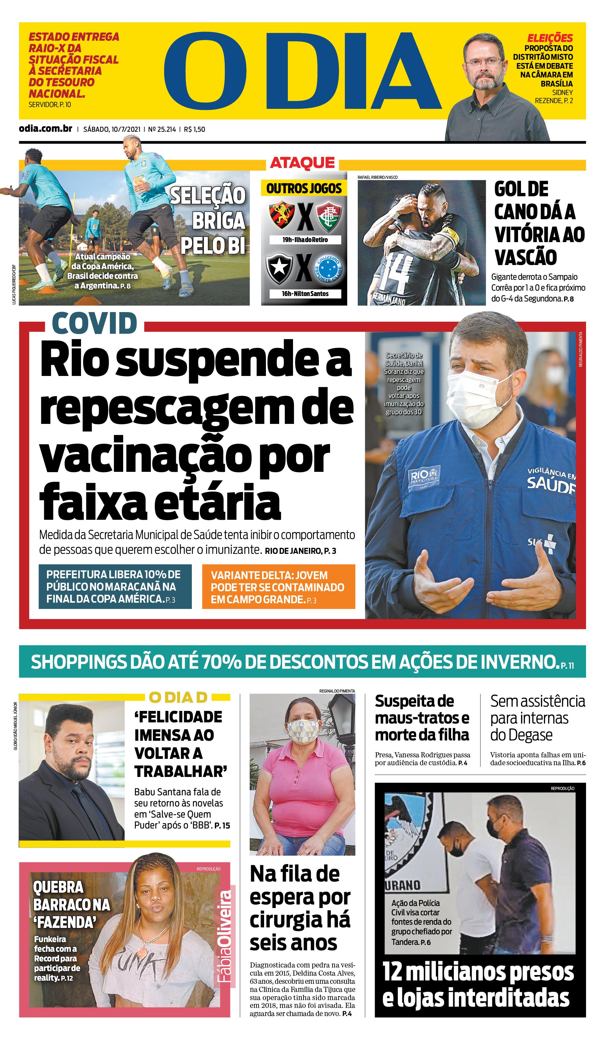 Pelo Brasileiro da Série B, o Vasco derrotou o Sampaio Corrêa por 1 a 0 na última 6ª-feira, em São Januário, com um gol de Germán Cano logo no primeiro minuto de jogo. Veja as capas dos jornais.