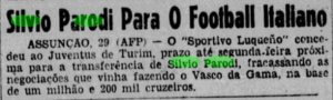 Segundo o Jornal dos Sports (Edição 07636), Silvio Parodi tinha um valor excessivamente elevado. O jogador foi um dos que participaram da vitoriosa campanha paraguaia na Copa América de 1953, quando a seleção ganhou o seu primeiro título da competição vencendo o Brasil por 3 a 2 na final.