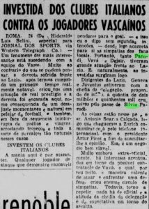 O gigante da colina ainda teve que disputar o paraguaio com o América-RJ e Juventus/ITA. O Vasco chegou até a desistir da contratação. O clube paraguaio havia pedido 400 mil cruzeiros à vista, o Vasco ofereceu o valor, mas de última hora o clube paraguaio subiu para 1 milhão e 200 mil cruzeiros. O Vasco recusou, mas depois acabou voltando atrás. Tudo certo? Não! Pois aí, apareceu a Juventus, da Itália.