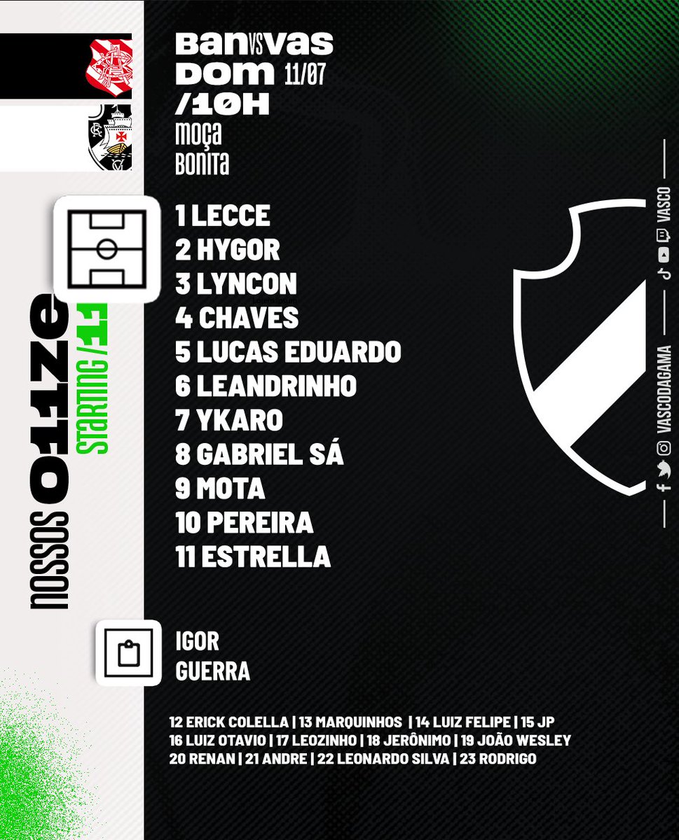 Juvenil: Confira a escalação do Vasco para o jogo contra o Bangu