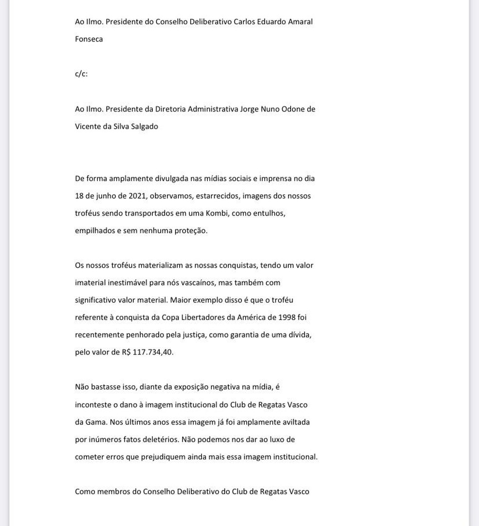 A solicitação é assinada em sua maioria por membros da Sempre Vasco. Inclusive por Julio Brant, que concorreu com Jorge Salgado pela presidência do clube no ano passado. Há, no entanto, pessoas de outros grupos e conselheiros importantes.