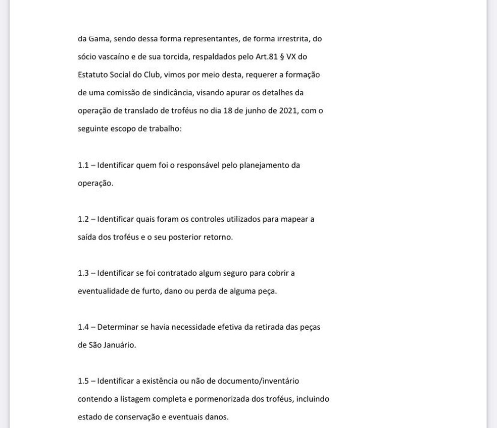 Grupos da política do Vasco solicitaram que seja criada uma comissão de sindicância para apurar a forma que os troféus do clube foram tratados durante uma mudança, no dia 18 do mês passado. Na ocasião, uma imagem de taças amontoadas em um veículo circulou nas redes sociais e revoltou muita gente.