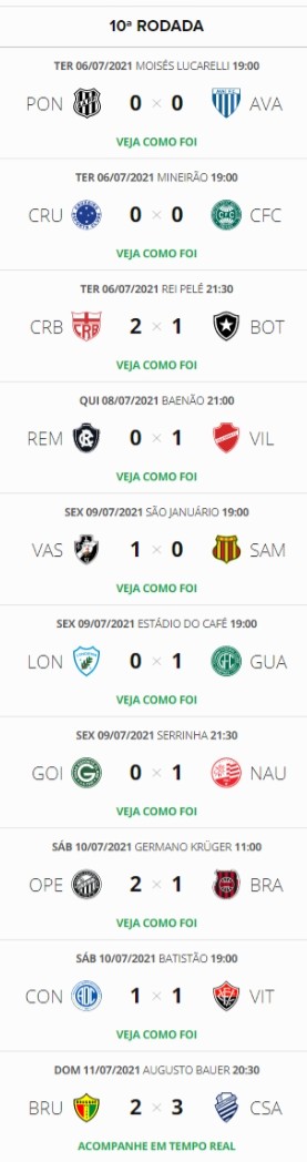 Os jogos Brusque x Coritiba (4ª rodada), Avaí x Remo (5ª rodada) e Botafogo x CSA (6ª rodada) foram adiados. O jogo Botafogo 3 x 3 Cruzeiro (11ª rodada) foi disputado antes do fim desta rodada.