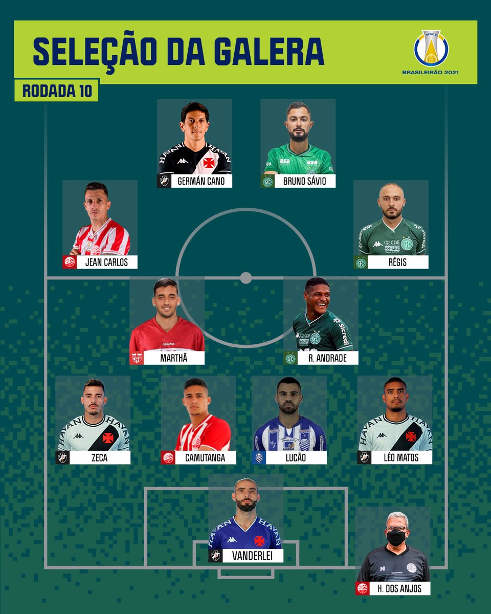 Chegou ela: a #SeleçãoDaGalera da rodada 10! Vocês votaram e a escalação teve domínio de @VascodaGama, @NauticoPE e @OficialGuarani. Que time!
