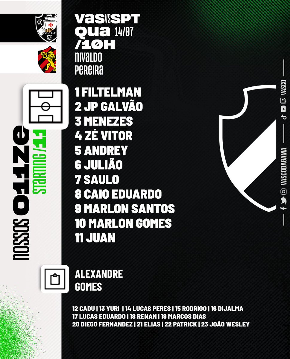 Meninos da Colina escalados pelo técnico Alexandre Gomes para o duelo contra o Sport, pelo Brasileirão Sub-20!
