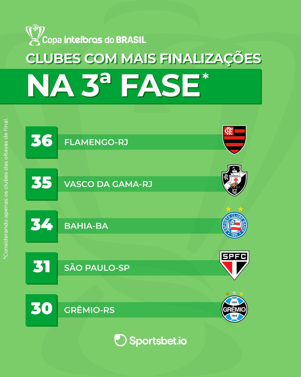 ⚽️🏃♂️ Veja quais são os clubes que mais chutaram a gol na última fase: