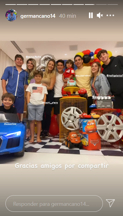 Galarza, Sarrafiore e Conca prestigiam festa de 3 anos de Lorenzo, filho de Germán Cano