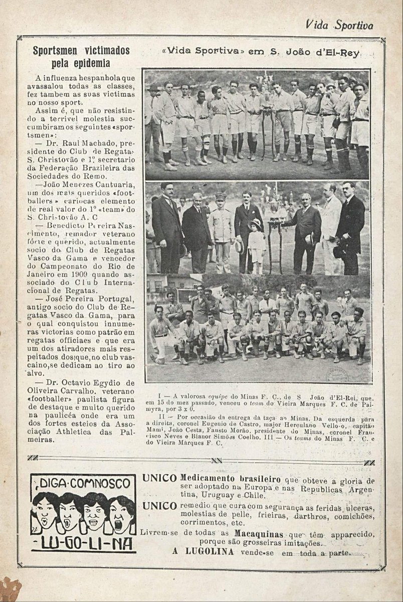 Há mais de 100 anos, dentre outros desportistas, o Vasco também perdeu valorosos quadros para a pandemia da Gripe Espanhola: