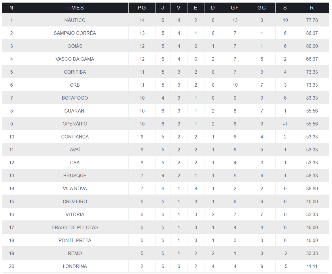 Fonte: NETVASCO (texto), Probabilidades no Futebol UFMG (classificações)