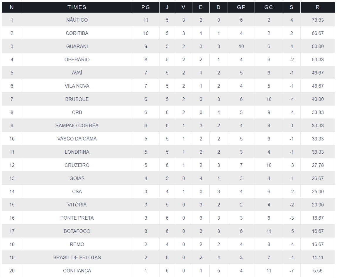 CLASSIFICAÇÃO COMO VISITANTE SÉRIE B
