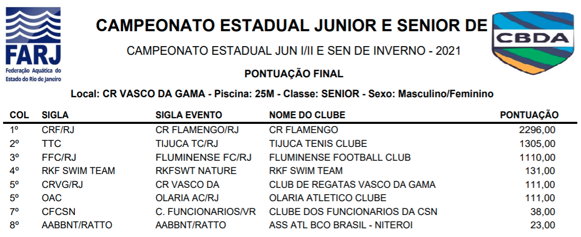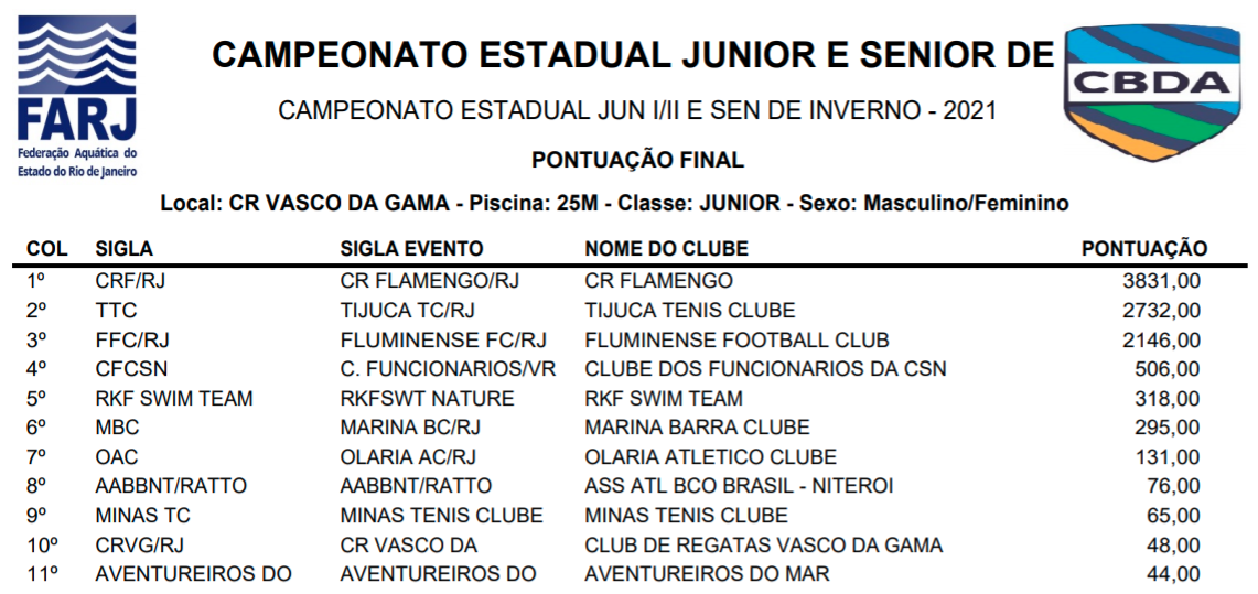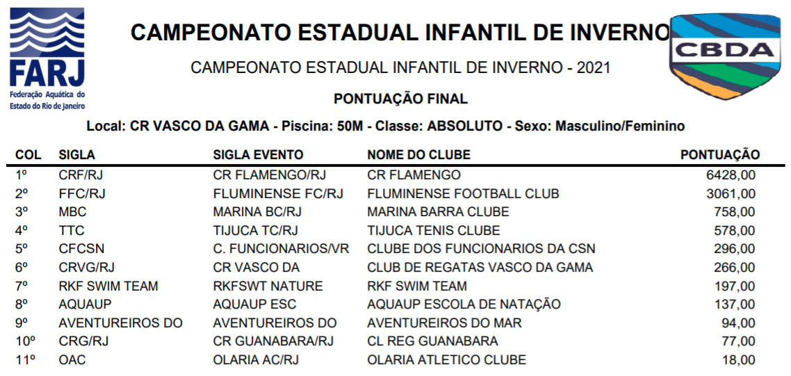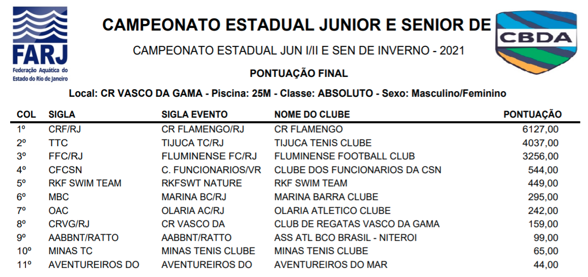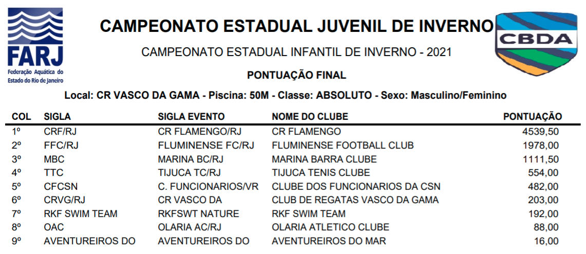 Natação: Vascaínos conquistam medalhas no Campeonato Estadual de Inverno Infantil a Sênior