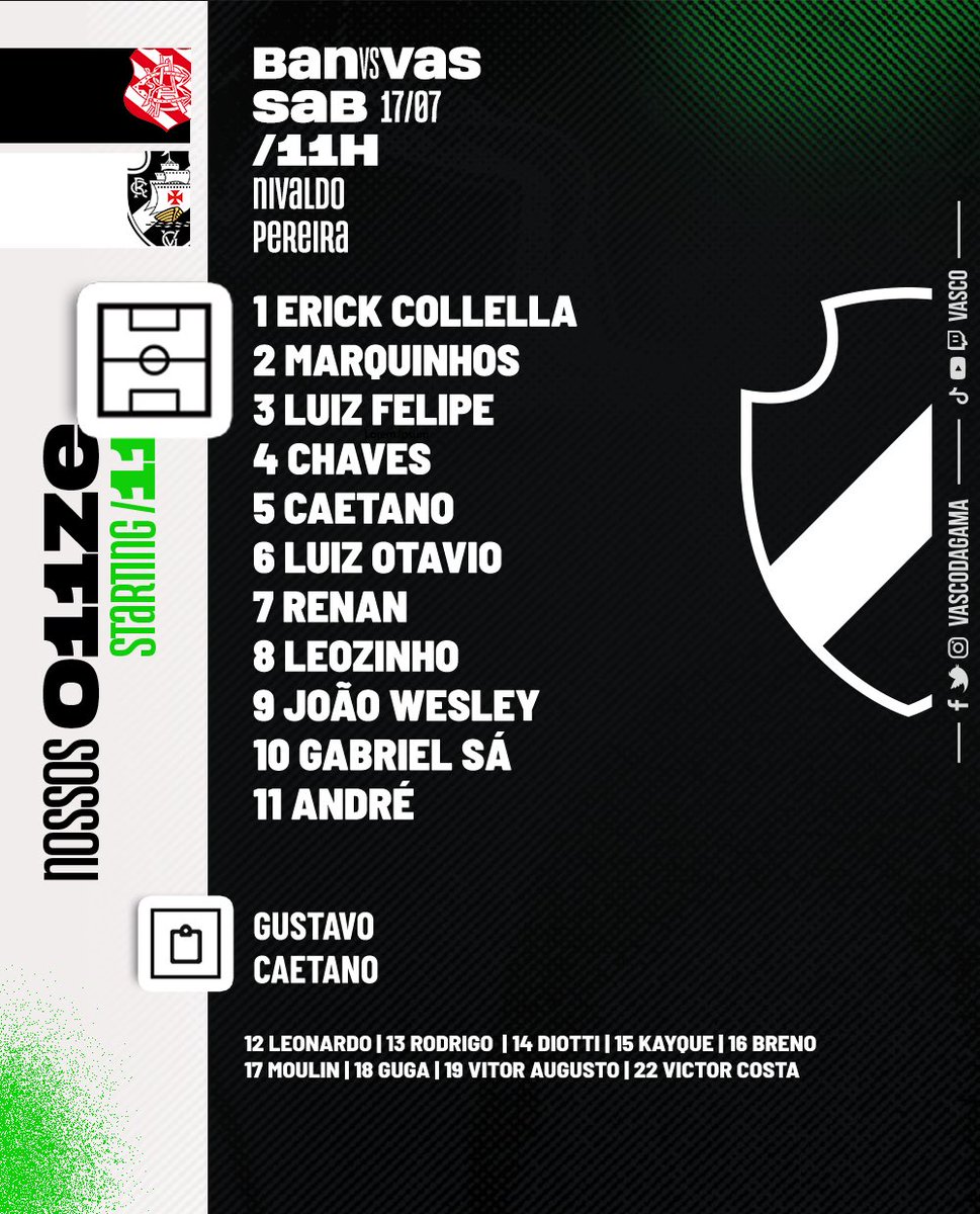 16/07/21 - Juvenil: Confira a escalação do Vasco para o jogo contra o Palmeiras