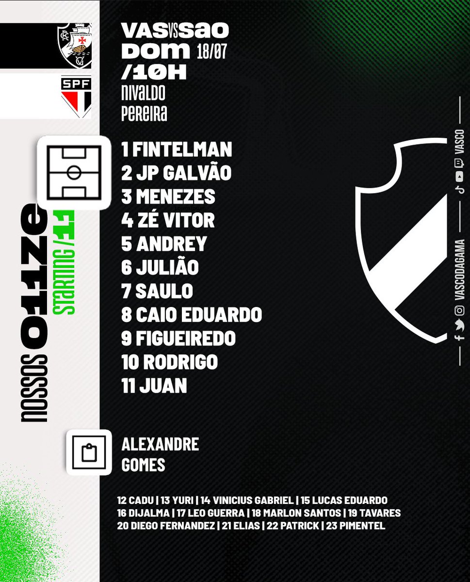 Juniores: Confira a escalação do Vasco para o jogo contra o São Paulo