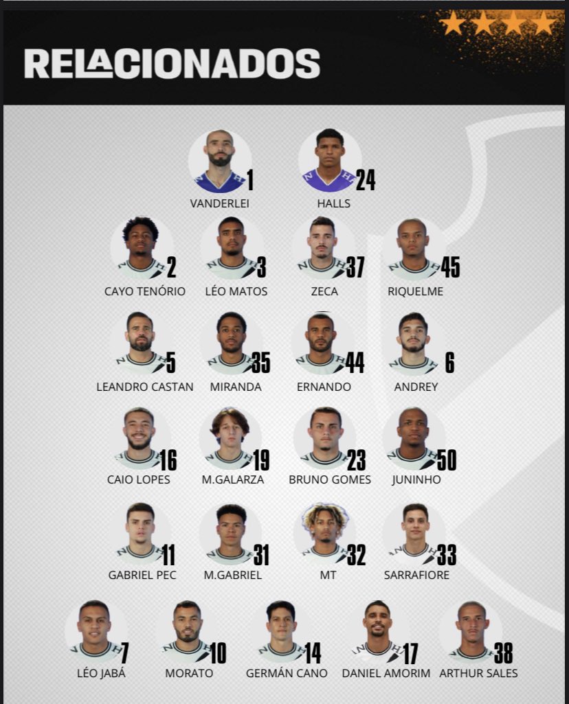Confira os relacionados do Vasco para o jogo contra o Náutico